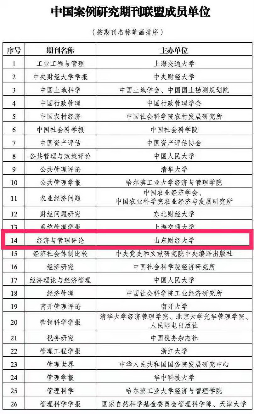 “中国案例研究期刊联盟”(简称联盟)是由中国专业学位案例建设专家咨询委员会倡议成立,联盟致力于共同搭建中国特色社会主义实践创新成果的宣传阵地,引领中国哲学社会科学研究范式变革,推动形成中国案例研究良好条件和有利环境,为立德树人、培养高质量人才作出贡献。《管理世界》《经济研究》《中国行政管理》《南开管理评论》《经济与管理评论》等26家期刊积极响应倡议。